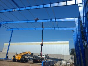 OBRAS / MONTAJE Civil-Metal Realizamos el montaje de la estructura primaria y secundaria en cualquier parte del país. Montamos la totalidad de los cerramientos de la cubierta y cerramientos laterales con sus zinguerias correspondientes.